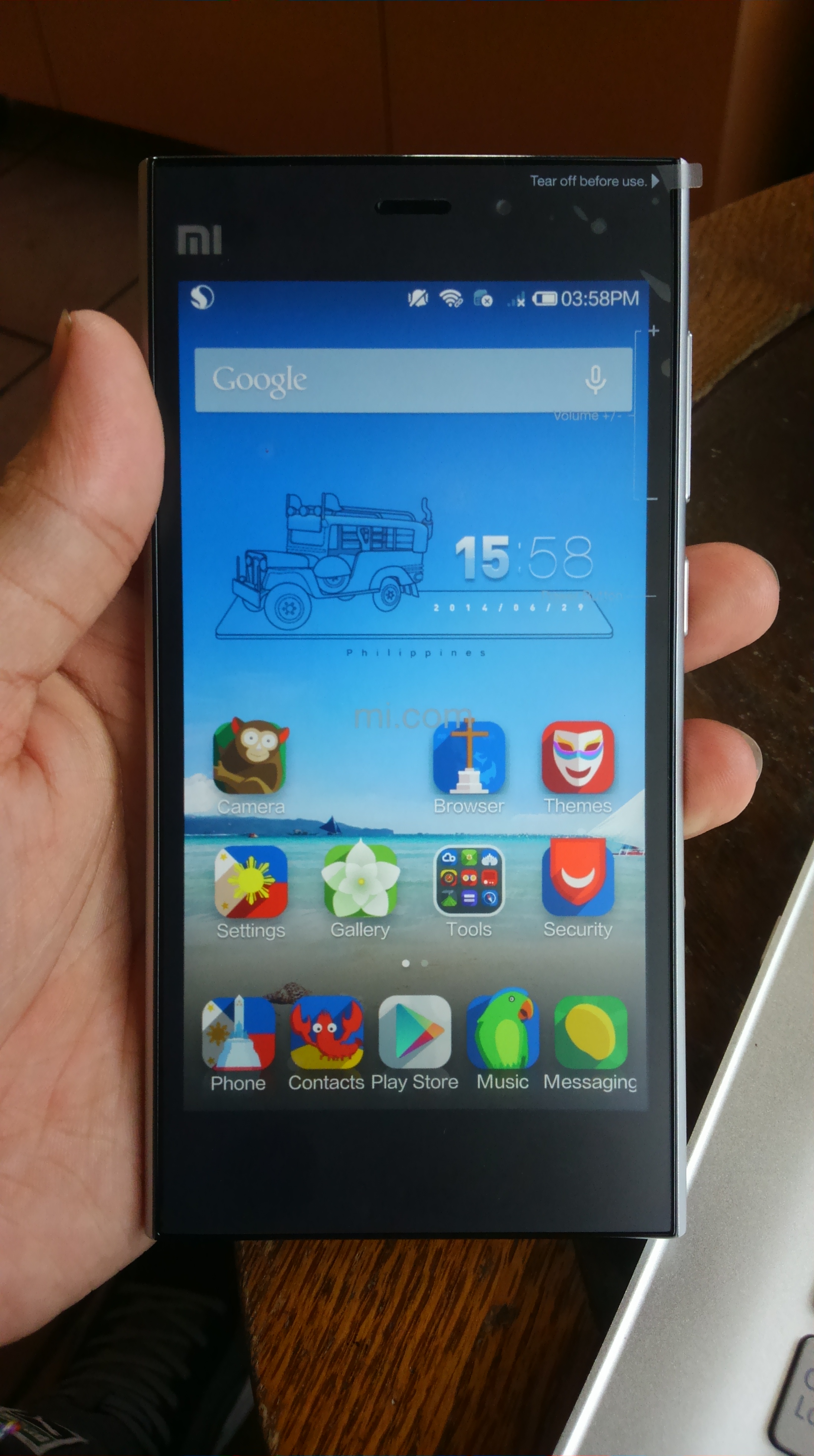 Booting up the device will give you a complete different reaction. After going through the normal start-up process, I was greeted with the iOS-looking MIUI V5. After applying the recently announced “Philippine” theme, this is the home screen that greeted me: